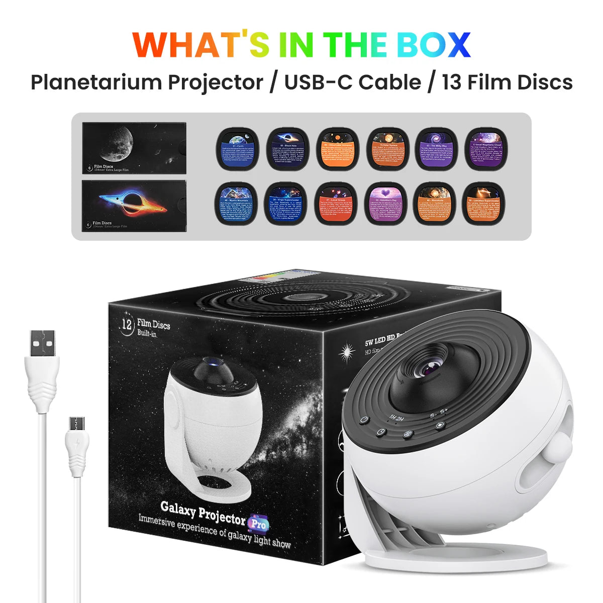 1x Galaxy Projector | 13x Film Discs | 1x Type-C USB Cable | 1x User Manual