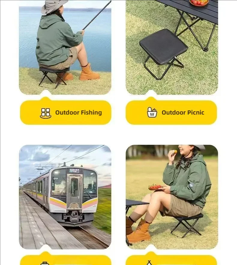 Enjoy comfort anywhere with the Compact Folding Camping Chair, your go-to companion for outdoor adventures. Designed for portability and strength, this lightweight stool folds into a small, easy-to-carry bag — perfect for camping, fishing, picnics, travel, festivals, or hiking.